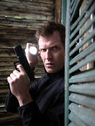 The next day, Danny ignored Jenny's warning and returned to the house to find the team, Ryan Mason, and Jimmy Keel dead there. Danny demanded to know what Ryan had done with Patrick, and threatened to shoot him, but managed to calm down and lower his gun. A Camouflage Beast then attacked Danny and knocked him out, but Danny was protected from the creature's claws by an anti-stab vest. After Danny recovered, when the Camo Beast came back to the house through an Anomaly and attacked the team, Danny shot it repeatedly until in fell back through the Anomaly.
